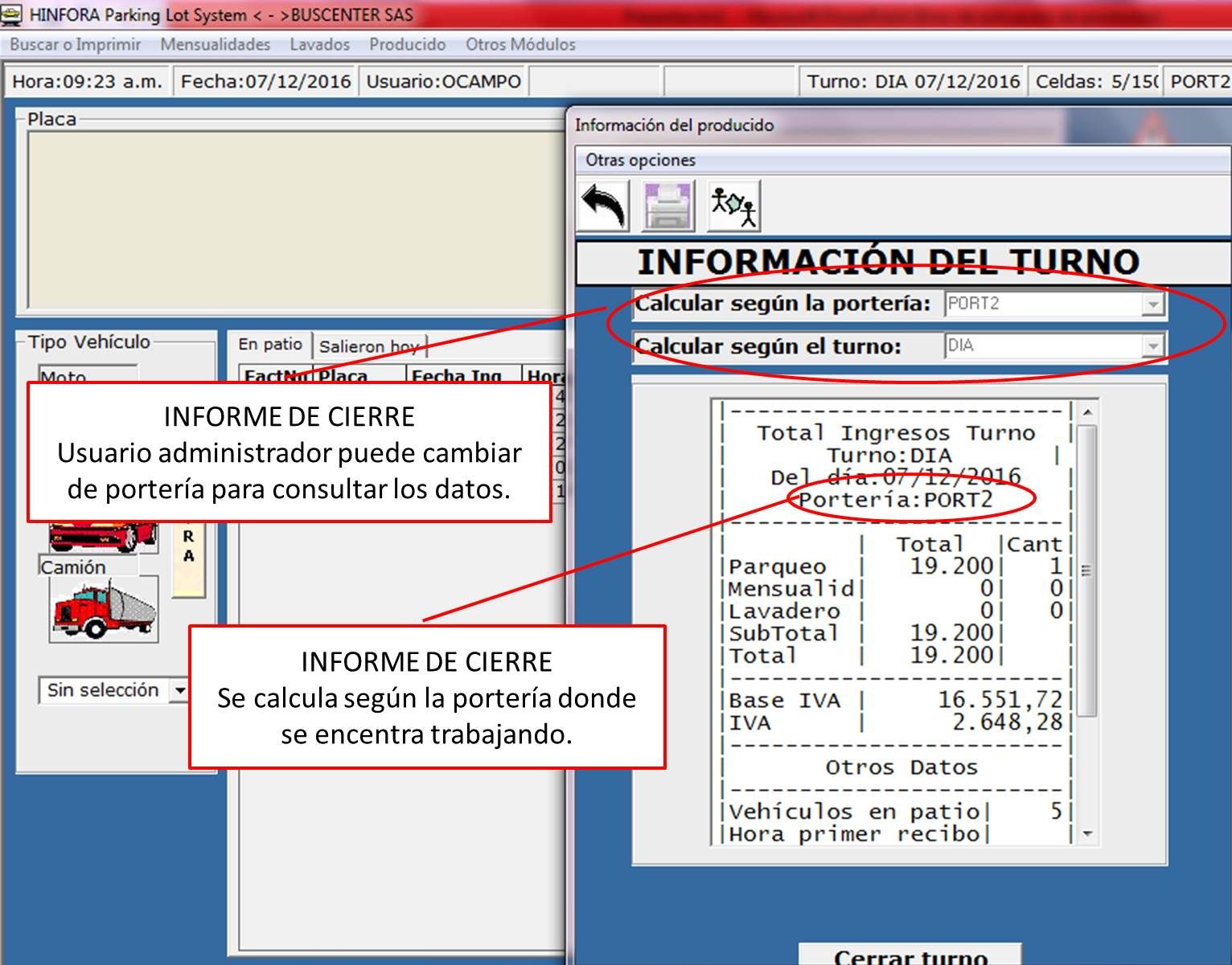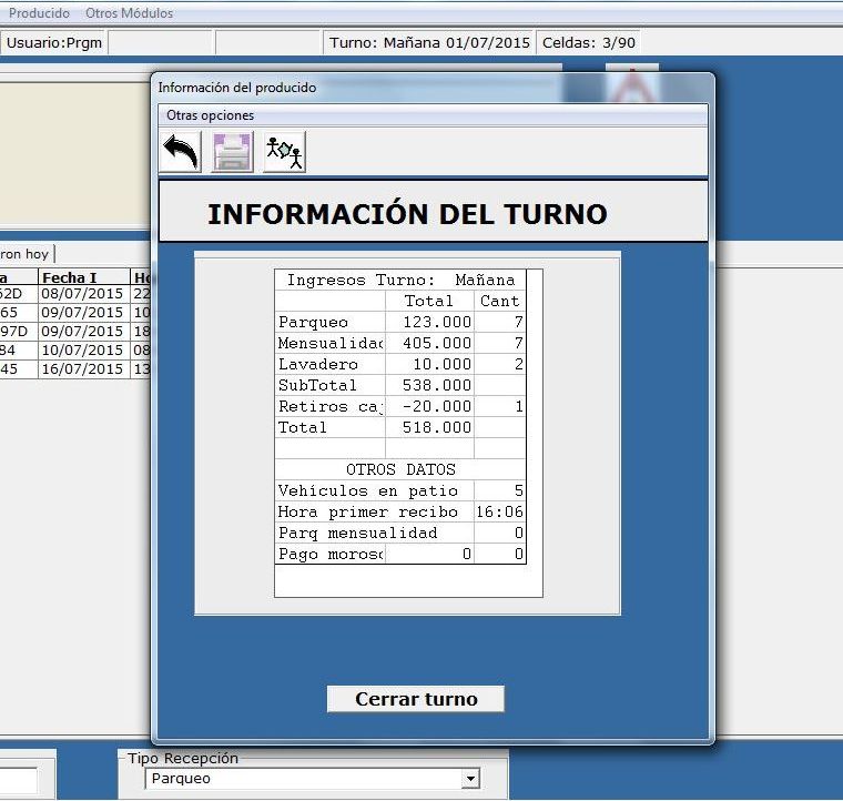 En el informe de cierre de turno se consolidan los ingresos de cada proceso y si lo deseá el informe se envía automáticamente por correo electrónico.